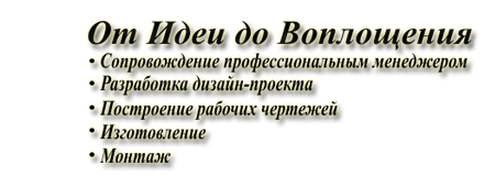Что является залогом высокого качества? Это искренняя любовь к выбранному делу. Мы выполняем полный цикл работ, от создания проекта до монтажа готовых изделий у клиента. Такова сфера нашей деятельности. Вы достойны только истинных шедевров. Поэтому индивидуальный подход – наше кредо. Оперативность – еще одно преимущество. Заказы выполняются в максимально короткие сроки.